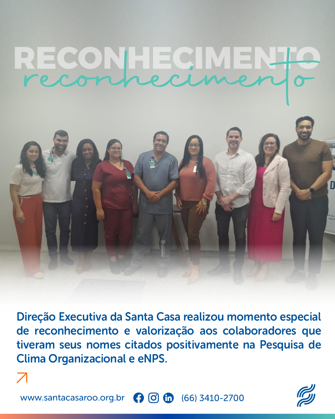 A Direção Executiva da Santa Casa realizou um momento especial de reconhecimento e valorização aos colaboradores que tiveram seus nomes citados na Pesquisa de Clima Organizacional e eNPS, como referências positivas dentro da instituição.