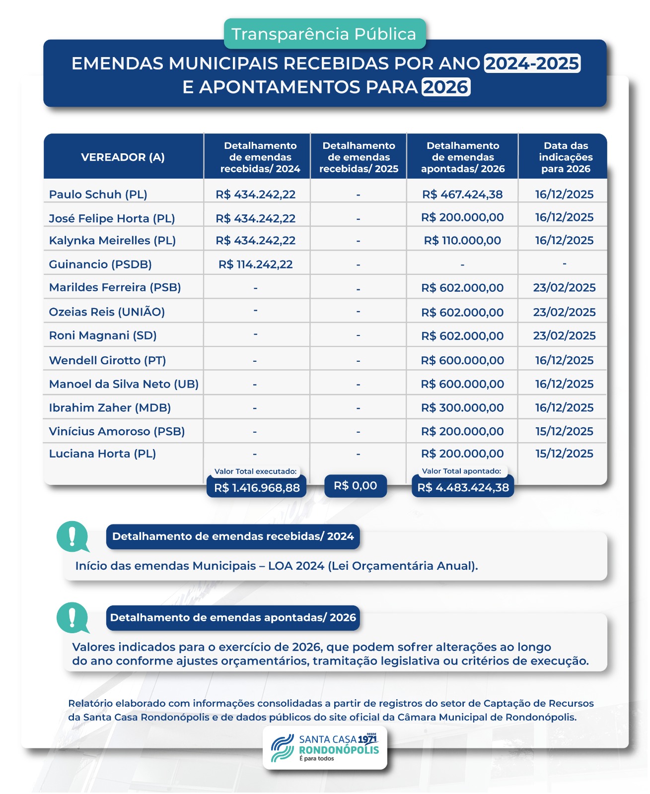 Relatório de Emendas Municipais Recebidas 2024 – 2025 – Atualização 03/26