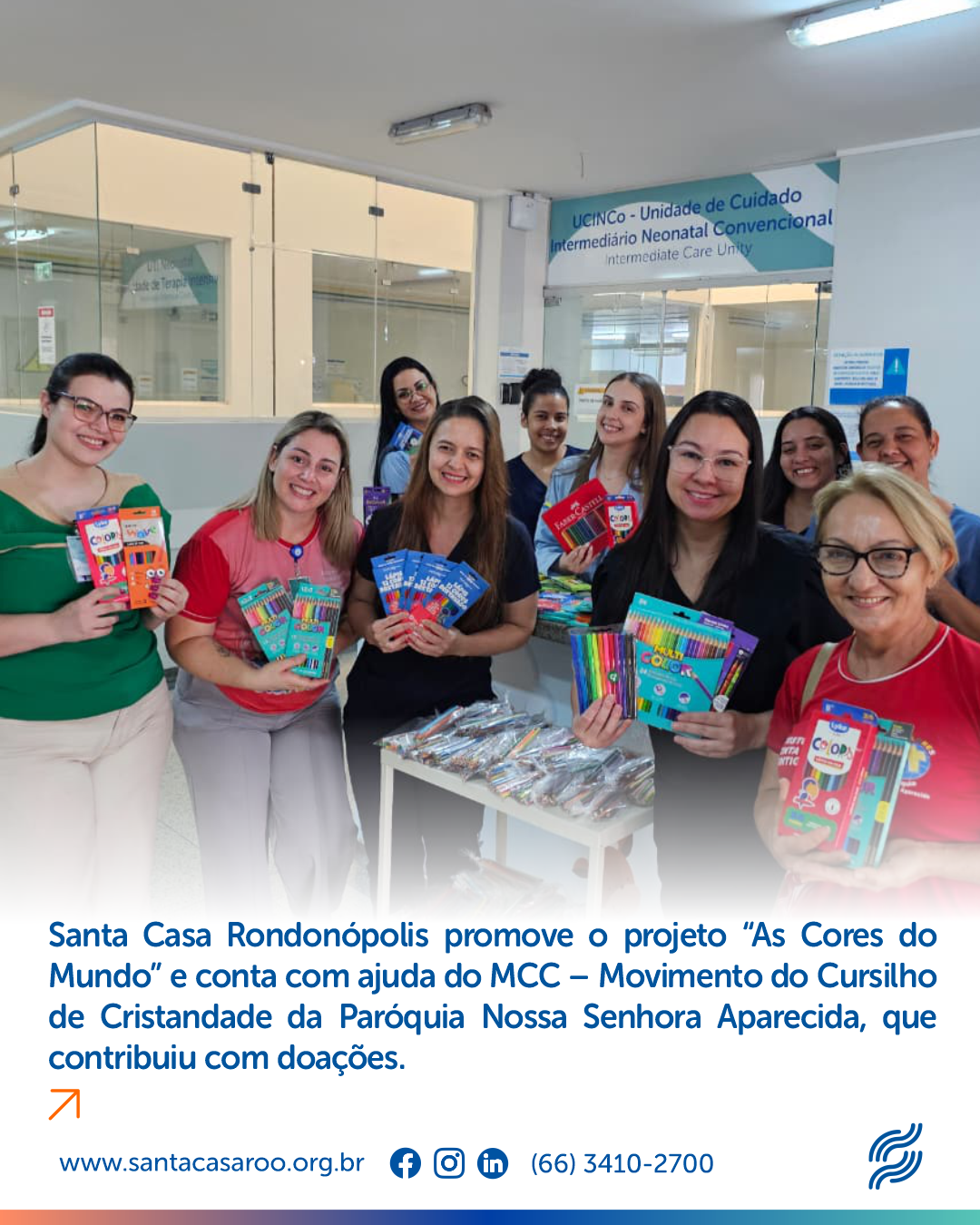 Registramos nosso agradecimento ao MCC – Movimento do Cursilho de Cristandade da Paróquia Nossa Senhora Aparecida, que contribuiu com doações para fortalecer o projeto. Esse gesto amplia a presença das cores no cotidiano do hospital e ajuda a transformar momentos difíceis em experiências de expressão e vínculo.